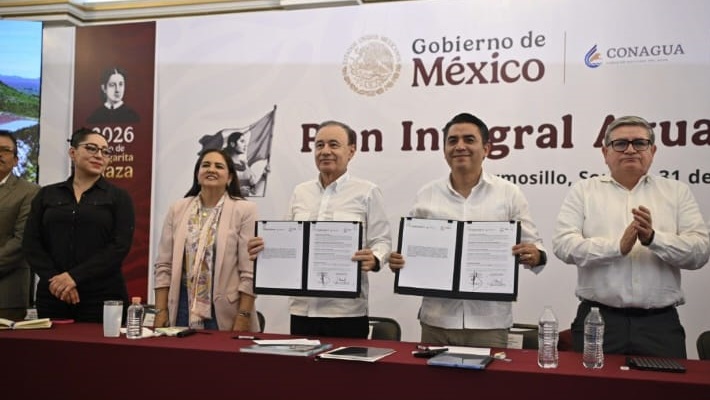 ![]() Presidenta Sheinbaum invierte más de 11 mil 500 millones en obras hídricas; garantiza 15% más de agua en Hermosillo: Durazo Redacción/EL GUAYMENSE Hermosillo, Sonora; 31 de marzo de 2026.- Como parte de la política hídrica impulsada por la presidenta Claudia Sheinbaum Pardo, mediante la Comisión Nacional del Agua (Conagua), el gobernador Alfonso Durazo Montaño firmó un convenio de colaboración para desarrollar el Plan Integral de Agua para Sonora, una estrategia que articula acciones para modernizar el campo en la entidad y garantizar el derecho humano al agua, con una inversión histórica de 11 mil 537 millones de pesos. El mandatario estatal señaló que se destinarán mil 500 millones de pesos para obras hídricas prioritarias en Hermosillo que asegurarán el acceso del recurso a las familias. En materia agrícola, se avanza en la tecnificación de los distritos de riego 038 Río Mayo y 041 Río Yaqui, con el objetivo de producir más alimentos con menos agua. Para estas acciones se tienen programada una inversión sexenal de 6 mil 500 millones de pesos. De manera complementaria, se consolidará la infraestructura hidroagrícola en el Distrito de Riego 018 del Pueblo Yaqui. “En términos de infraestructura, nada será suficiente sino aprovechamos y utilizamos con una gran responsabilidad social la poca agua de la que disponemos. Por qué si no es así, no habrá agua que alcance. Apliquémonos y comprometámonos todos a hacer un uso racional de este gran recurso para garantizar, no solo su consumo en nuestra etapa aquí, en esta vida, sino particularmente para las futuras generaciones”, expresó el gobernador Durazo. En cuanto al acceso al agua para la población, mediante el Fondo de Aportaciones para la Infraestructura Social (FAIS) y Programas Federalizados en 2026, se desarrollan 595 acciones prioritarias en agua potable, alcantarillado y saneamiento, con una inversión conjunta estimada de casi 670 millones de pesos. Entre estas acciones destacan 402 obras de agua potable, 184 de alcantarillado, seis de saneamiento y tres de prevención de inundaciones, principalmente en Guaymas-Empalme. Al respecto, Efraín Morales López, director de Conagua, hizo un llamado a las presidentas y los presidentes municipales para que inviertan en agua lo más posible, pues “cuando se piensa en agua, se tiene que apostar con decisión, con determinación, pensando en que estamos haciendo un gran esfuerzo para garantizar agua para toda la gente que está actualmente, pero, sobre todo, para nuestros hijos, nuestras nietas. Eso es una de las mejores herencias que les podemos dejar”, aseveró. |